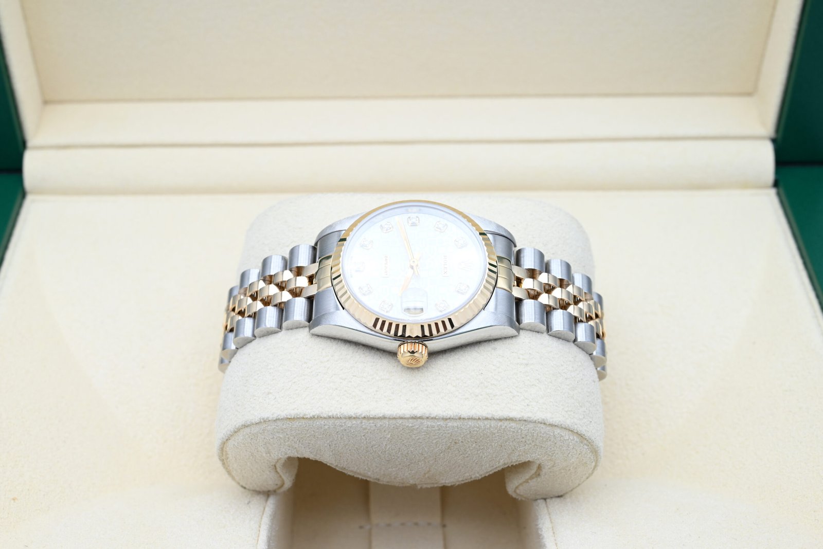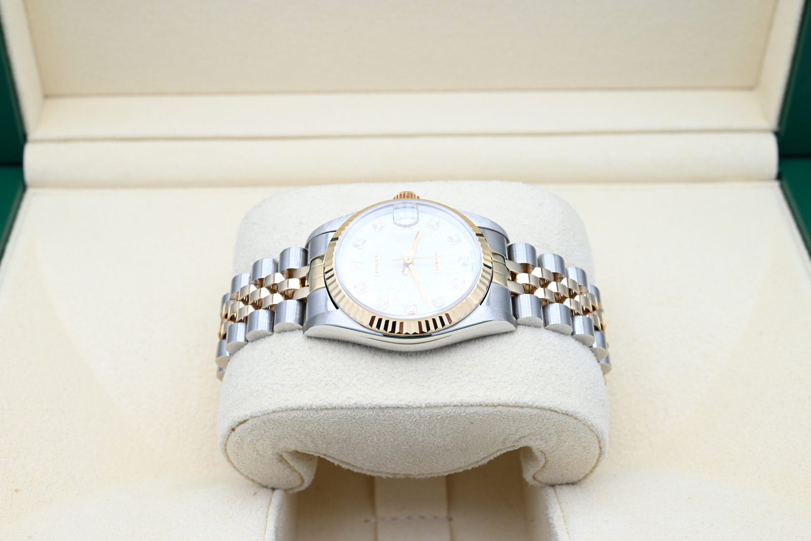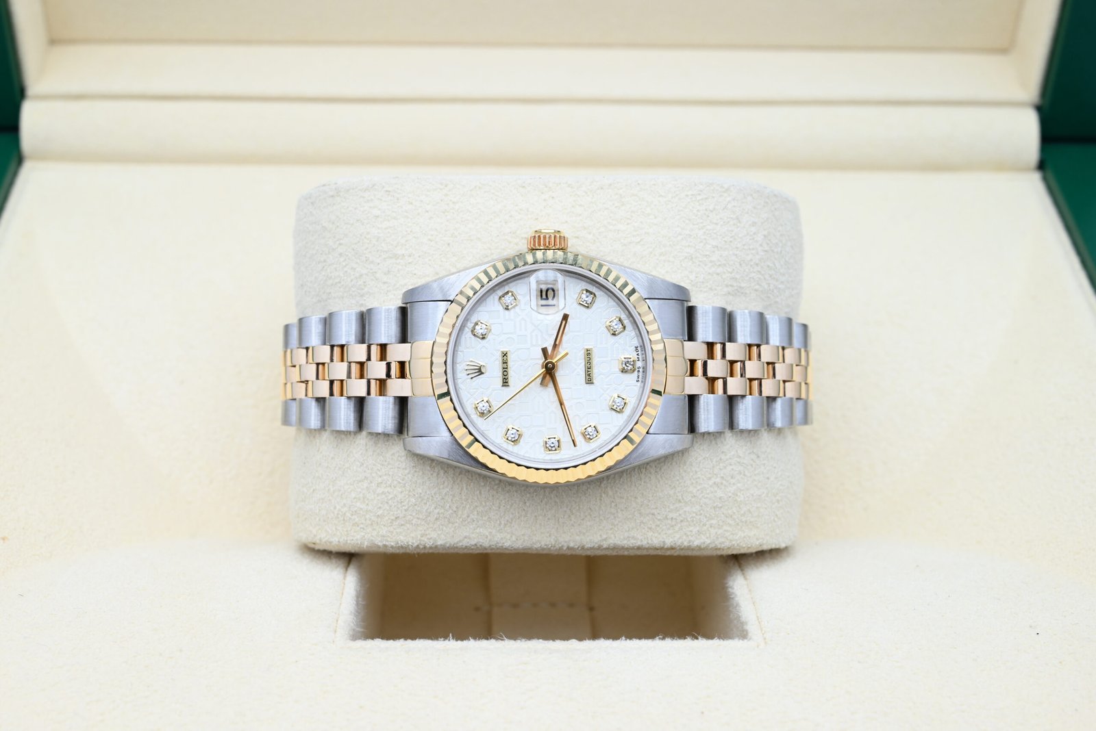 Rolex Datejust 68273 from 1994 with the silver diamond dial in excellent condition, including the original box and papers.